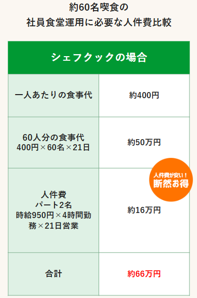 シェフクックの社員食堂が低価格で導入できる仕組み